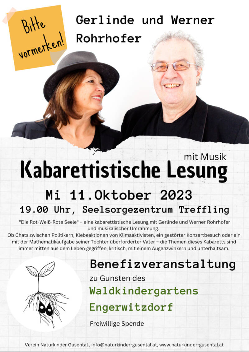 Herzlichen Dank, an Gerlinde und Werner Rohrhofer, die uns an diesem Abend mit ihrer Kabarettistischen Lesung gut unterhalten haben! Vielen Dank auch für die musikalische Umrahmung von 4 jungen Damen, die ihre Kindergartenzeit bei uns, im ehemaligen Naturkindergarten, verbracht haben.