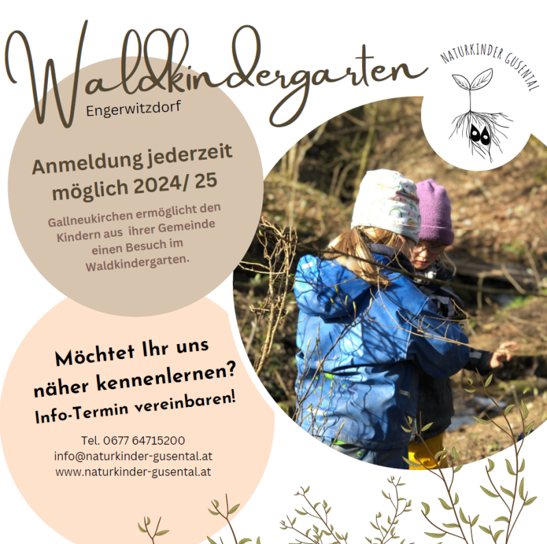 Wir freuen uns, dass der Waldkindergarten Engerwitzdorf mit Jänner 2024 in der Kindergartenkooperation der Gemeinden Engerwitzdorf und Gallneukirchen ist. Daher ist es auch möglich das Kinder aus Gallneukirchen unseren Kindergarten besuchen können.